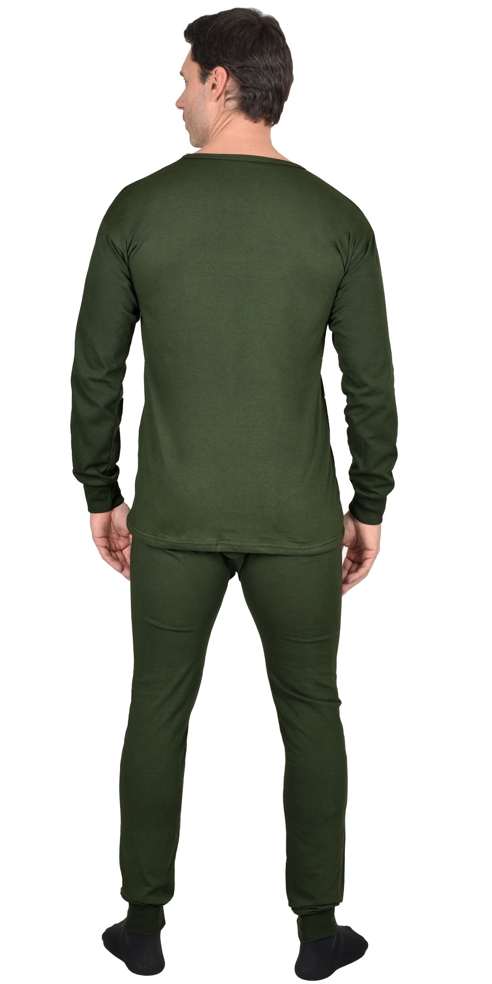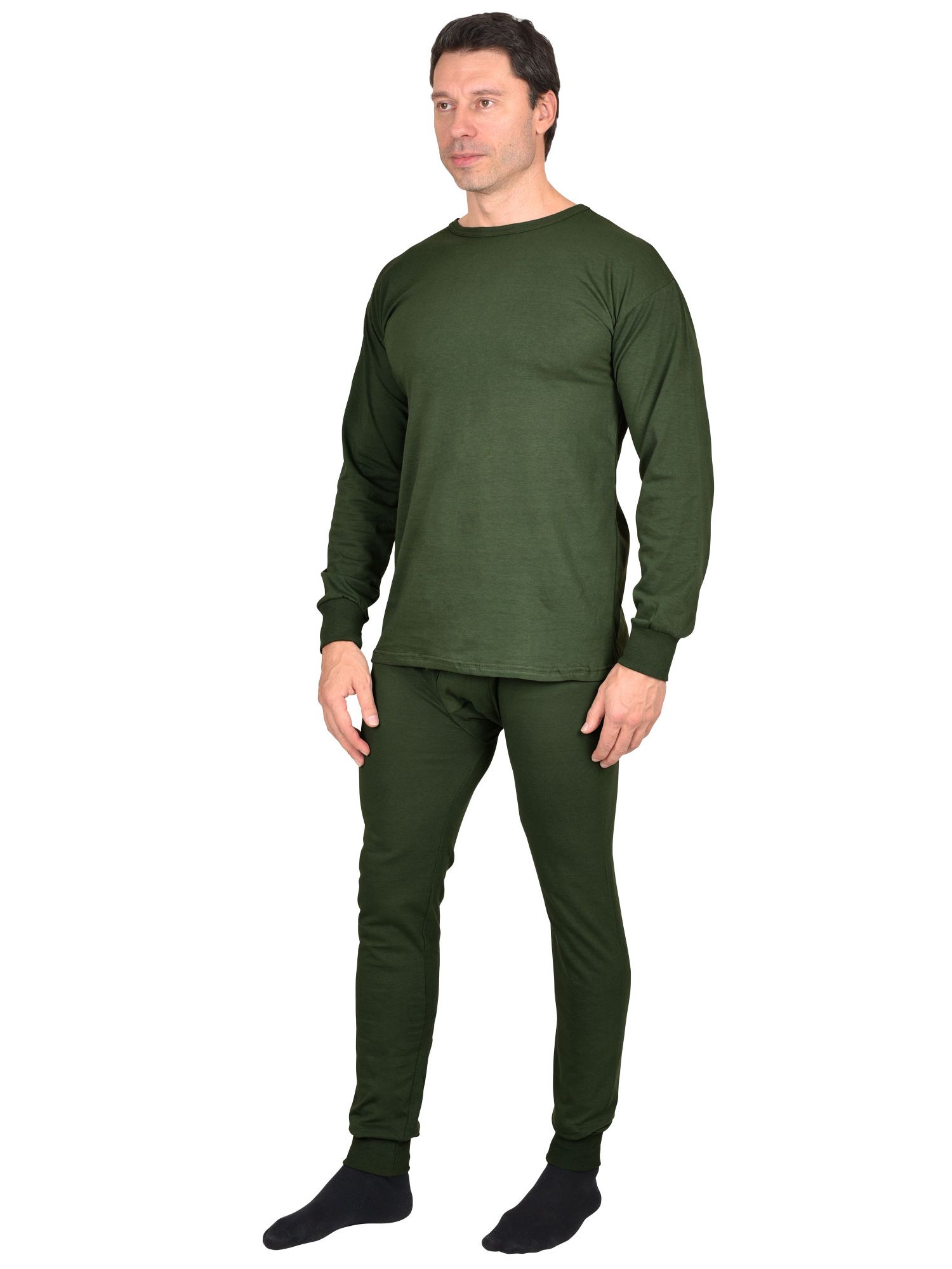 Трикотажное полотно, 100% х/б. Фуфайка с круглой горловиной. Кальсоны на резинке. Низ рукавов и кальсон с трикотажными манжетами. ГОСТ 20462-87.