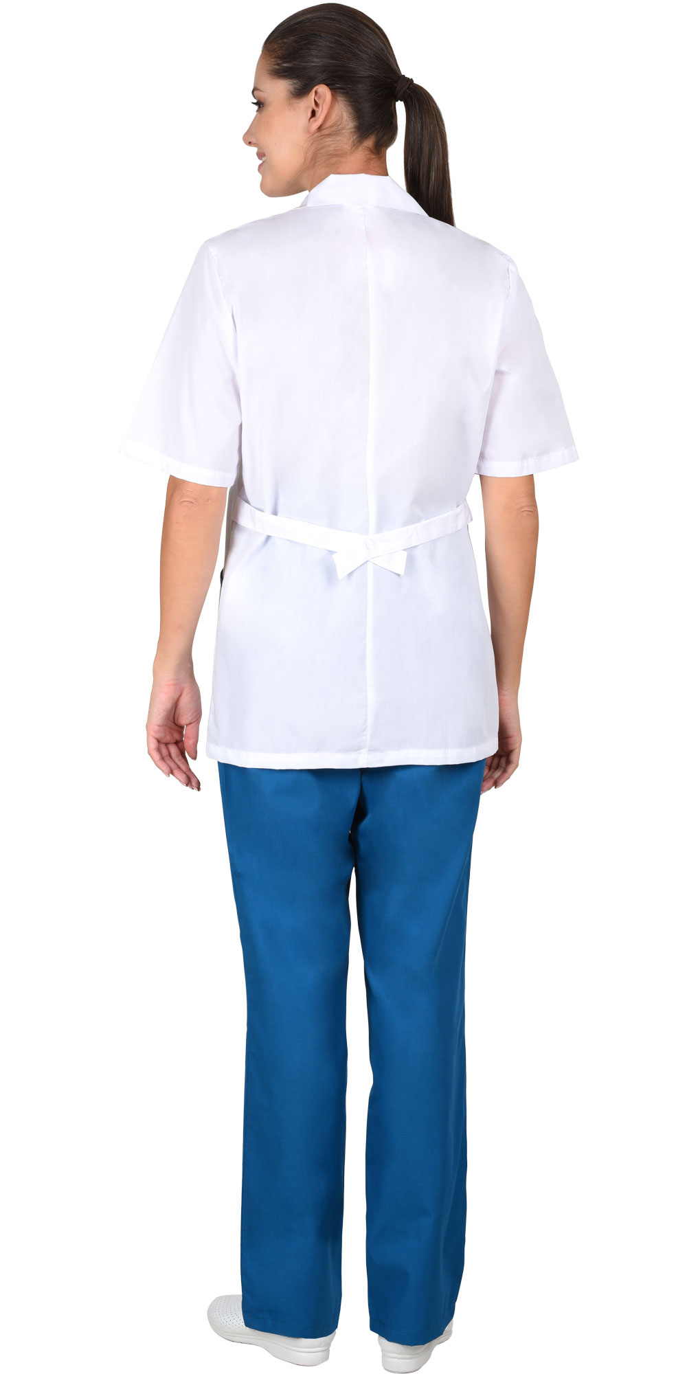 Костюм женский медицинский: блуза прямого силуэта и брюки прямого кроя.