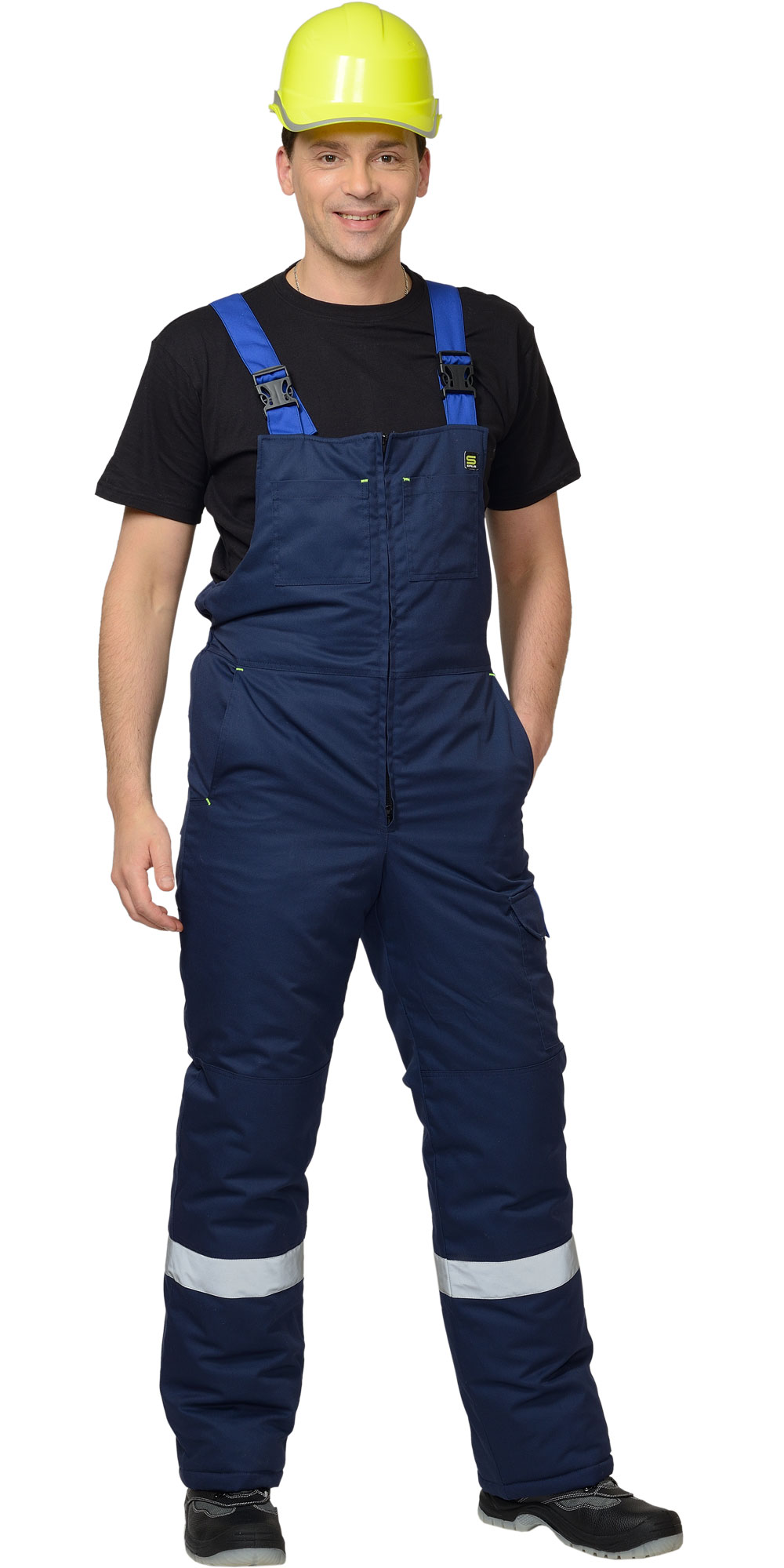 Полукомбинезон на утеплённой подкладке, с бретелями, с центральной застёжкой на молнию в среднем шве передних половинок, с наколенниками, спереди полукомбинезон с нагрудными и боковыми карманами, сзади с верхними накладными карманами и карманами для инструментов, с резинкой в области талии. Бретели с помочной резинкой, регулируются пряжками – фастексами.