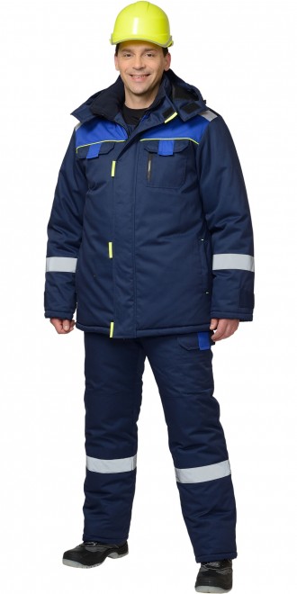 Костюм зимний предназначен для особого климатического пояса 4 класса защиты, состоит из куртки и полукомбинезона. В костюме предусмотрены светоотражающие детали для обеспечения видимости работающего в тёмное время суток.