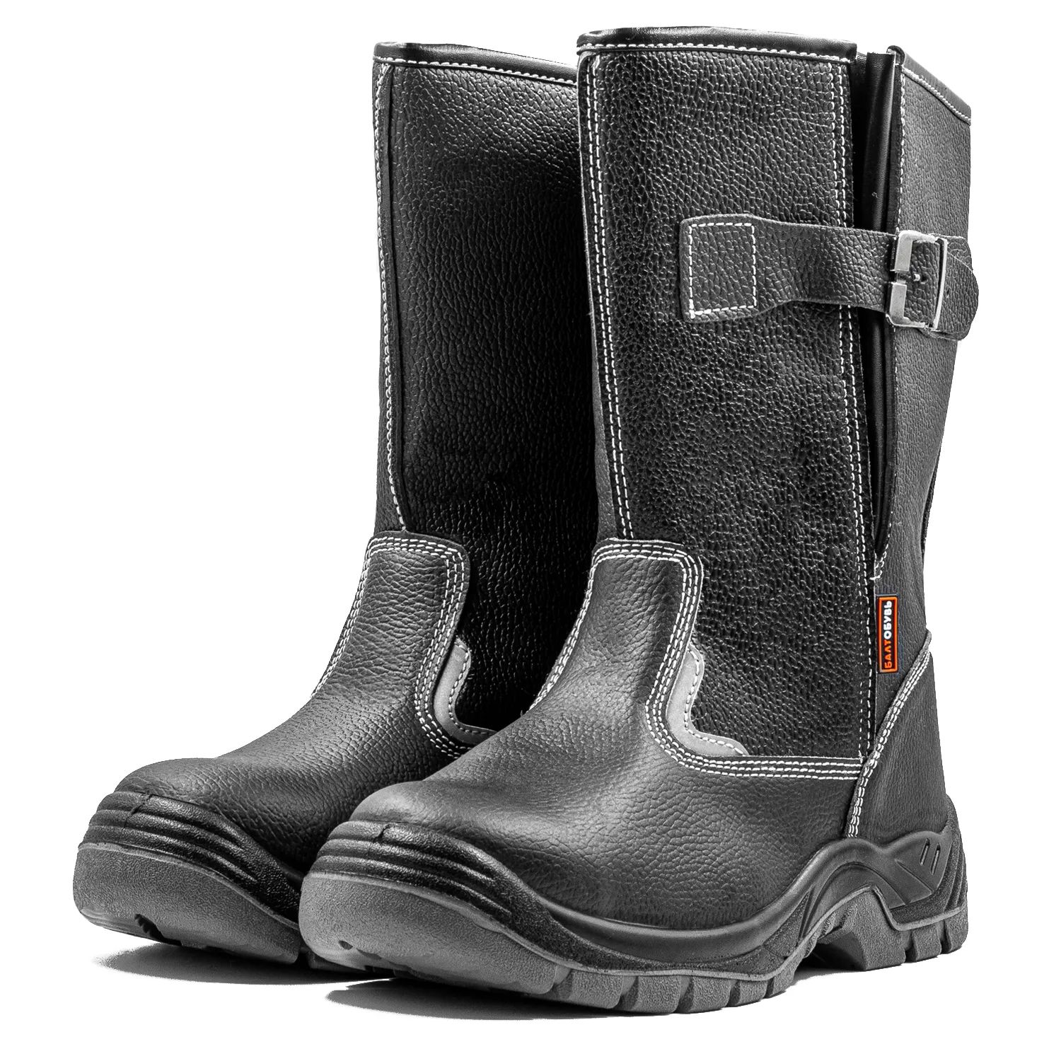 Рабочие сапоги на двухслойной ПУ/ПУ (полиуретановой) подошве изготовлены из натуральной юфтевой кожи устойчивой к воздействию агрессивных внешних факторов. Сапоги утеплены искусственным мехом. Подошва изготовлена литьевым методом, устойчива к воздействию кислотно-щелочных веществ (до 20%), масло-бензольных соединений и нефтепродуктов. Рабочая температура эксплуатации ботинок от -35°С до +85°С. Амортизатор в пяточной части сапога обеспечивает дополнительный комфорт для ног. Анатомическая стелька из ЭВА дублированная мехом обеспечивает комфорт носки в зимний период и снижает нагрузку на стопу