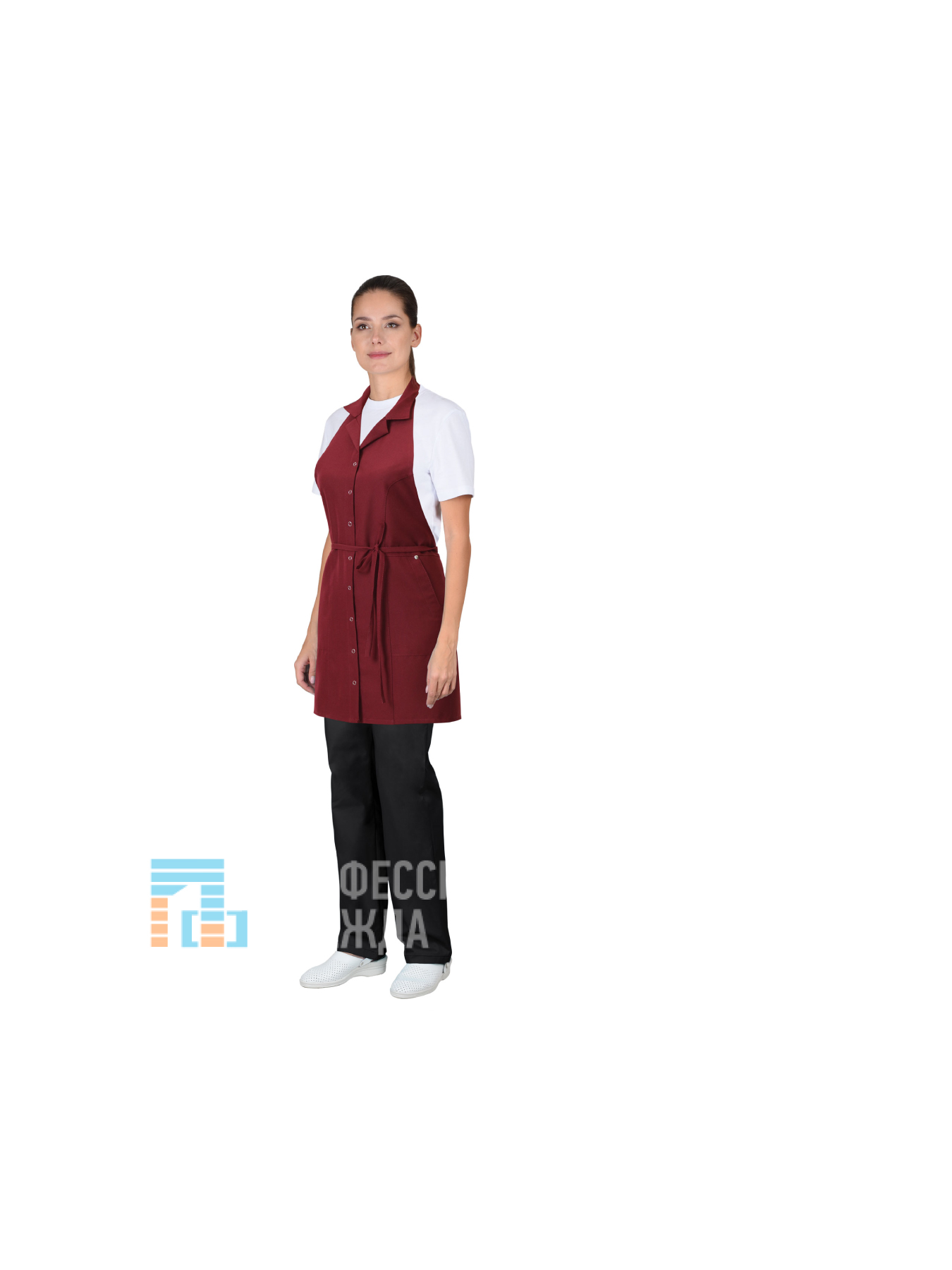 | Особенности | с цельновыкроенным нагрудником с центральной бортовой сквозной застёжкой на 8 кнопок и прямой линией низа |