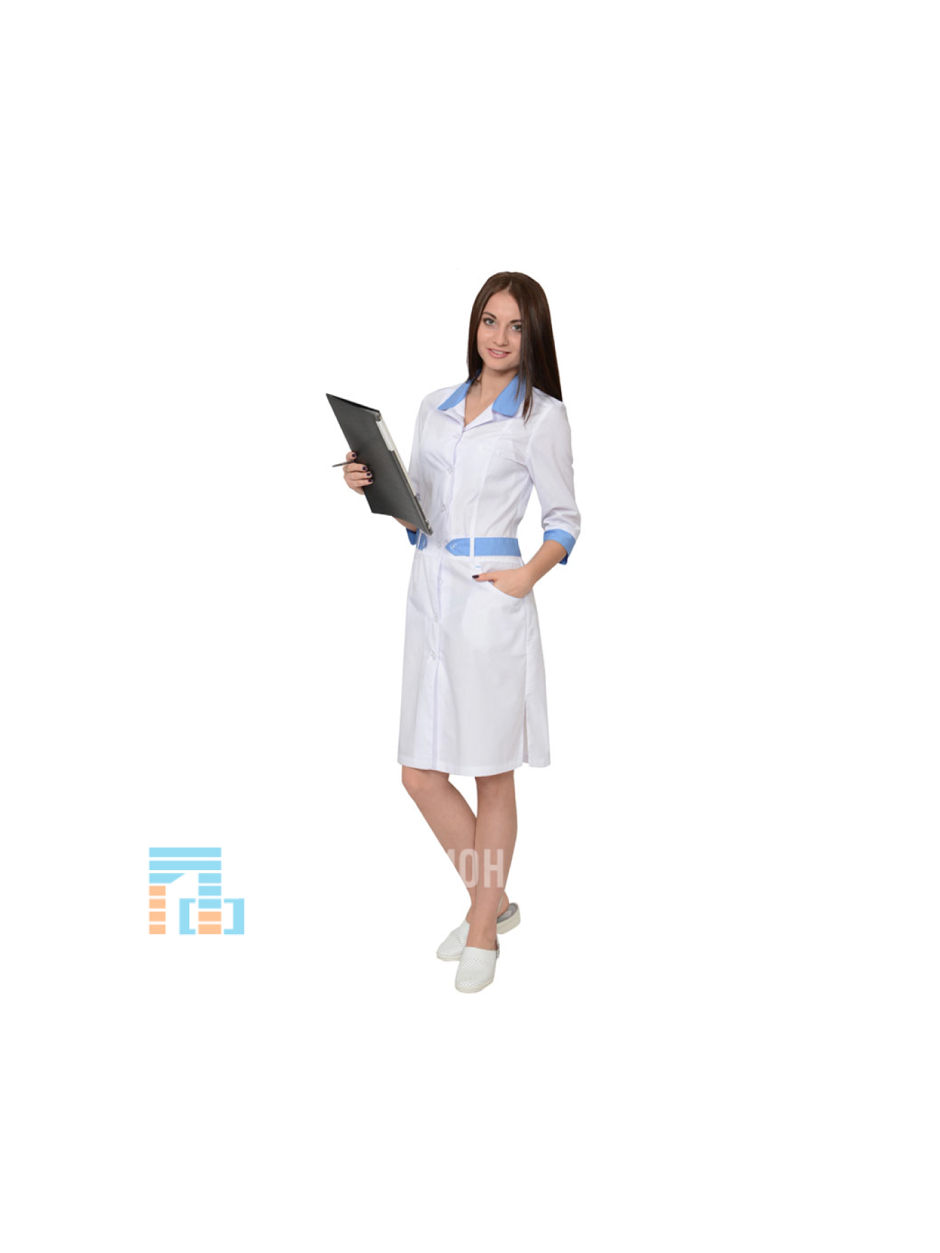 Халат женский полуприлегающего силуэта с притачным поясом и разрезами в боковых швах