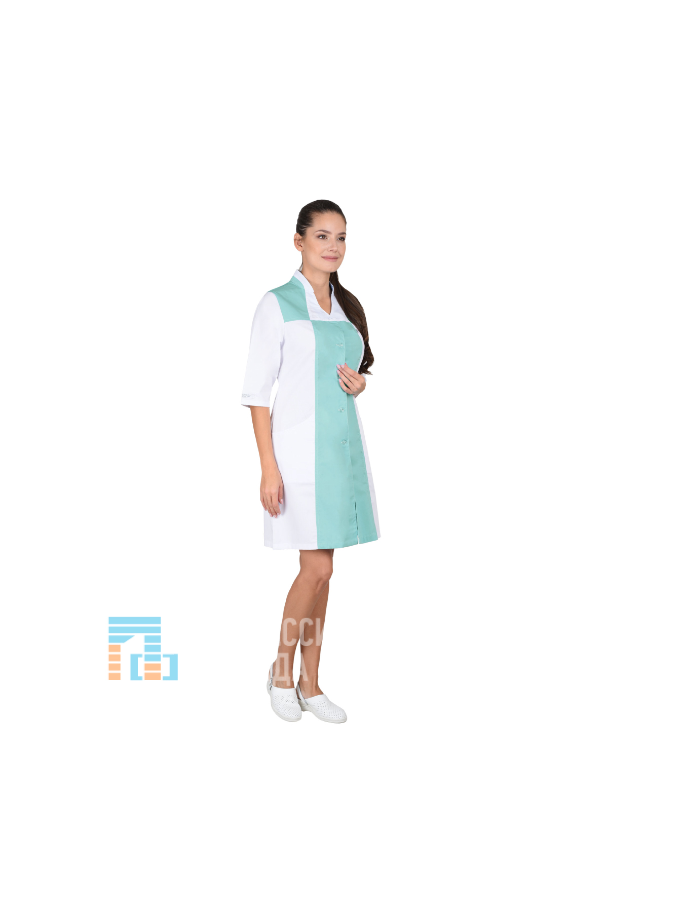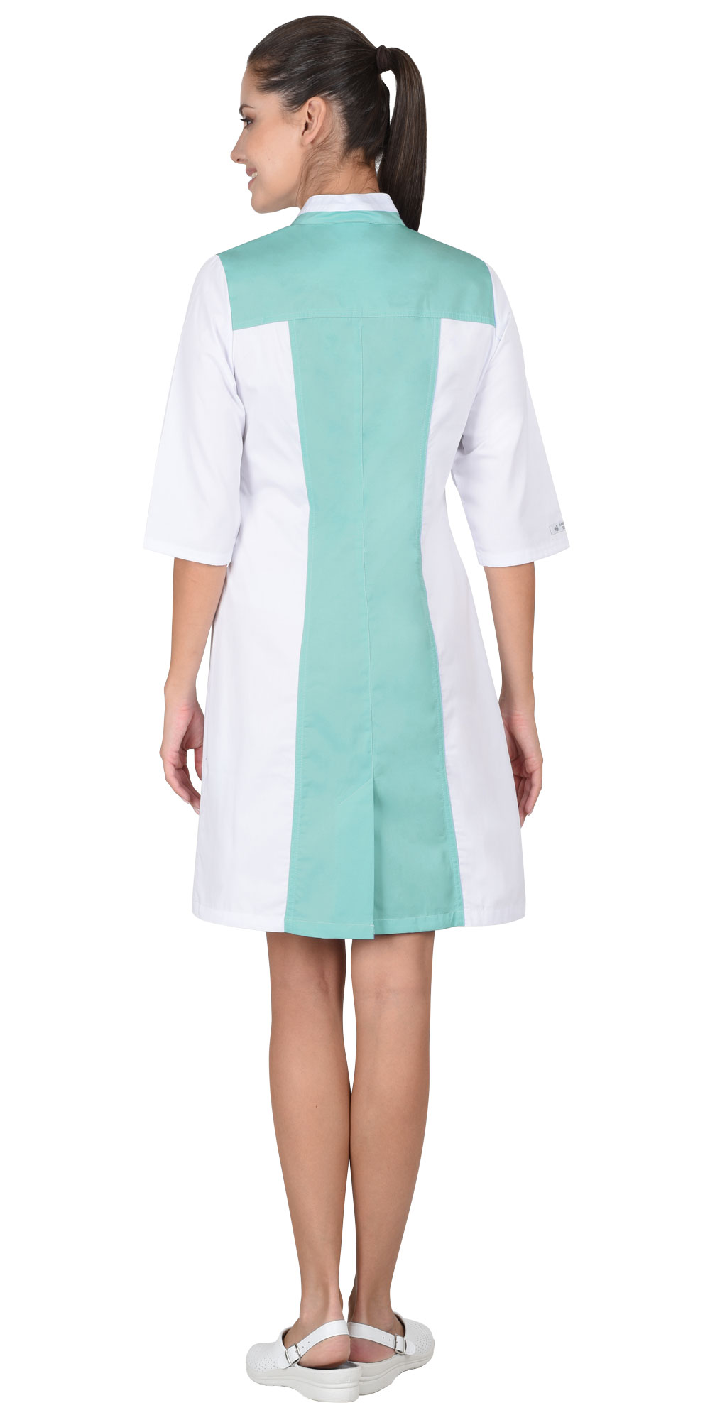 Халат женский медицинский полуприлегающего силуэта.