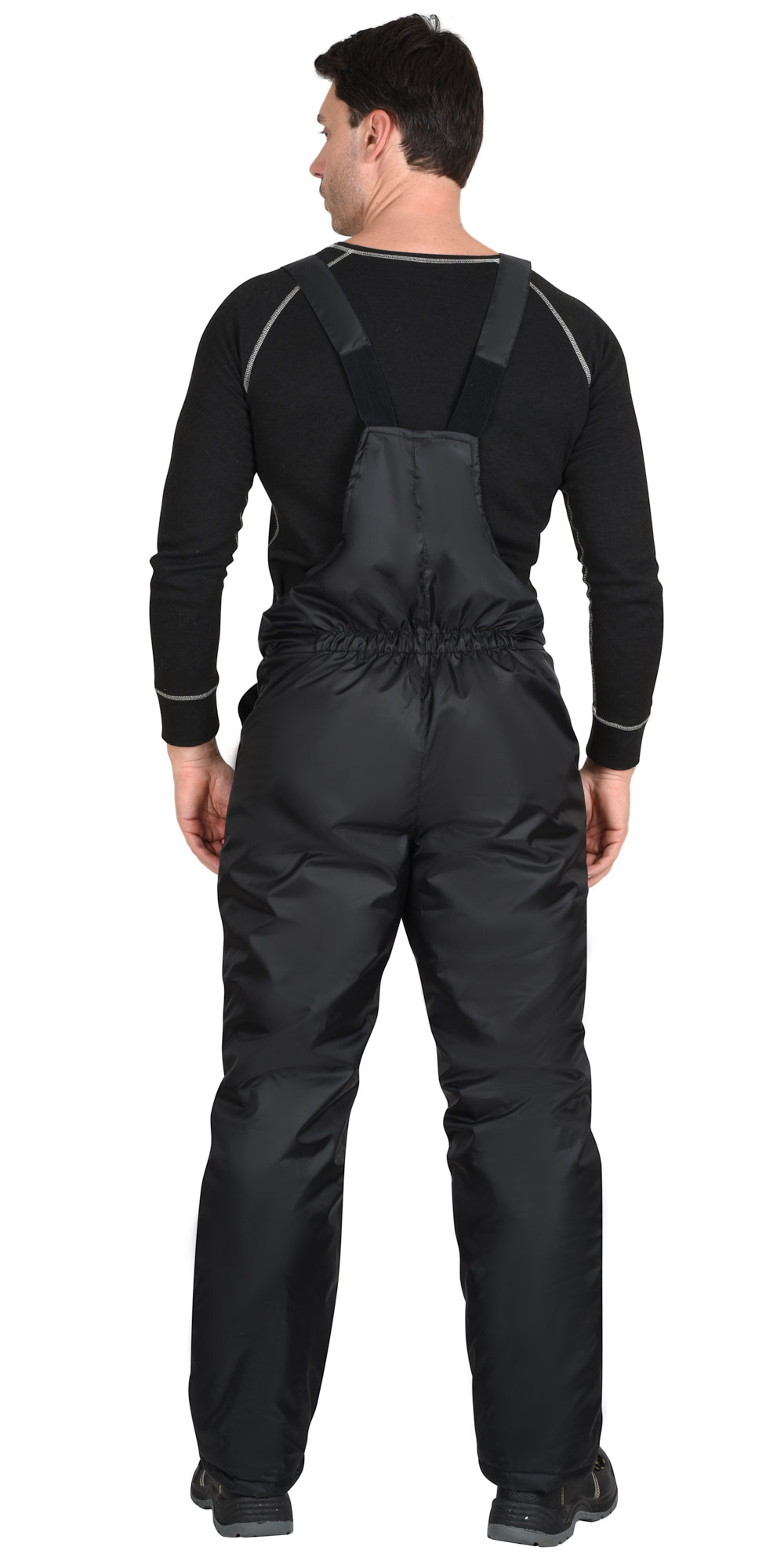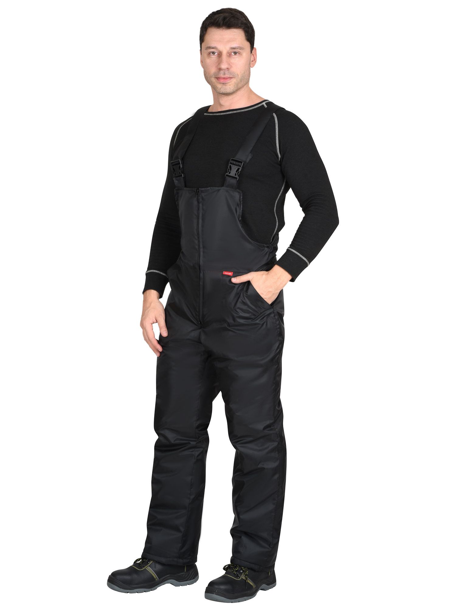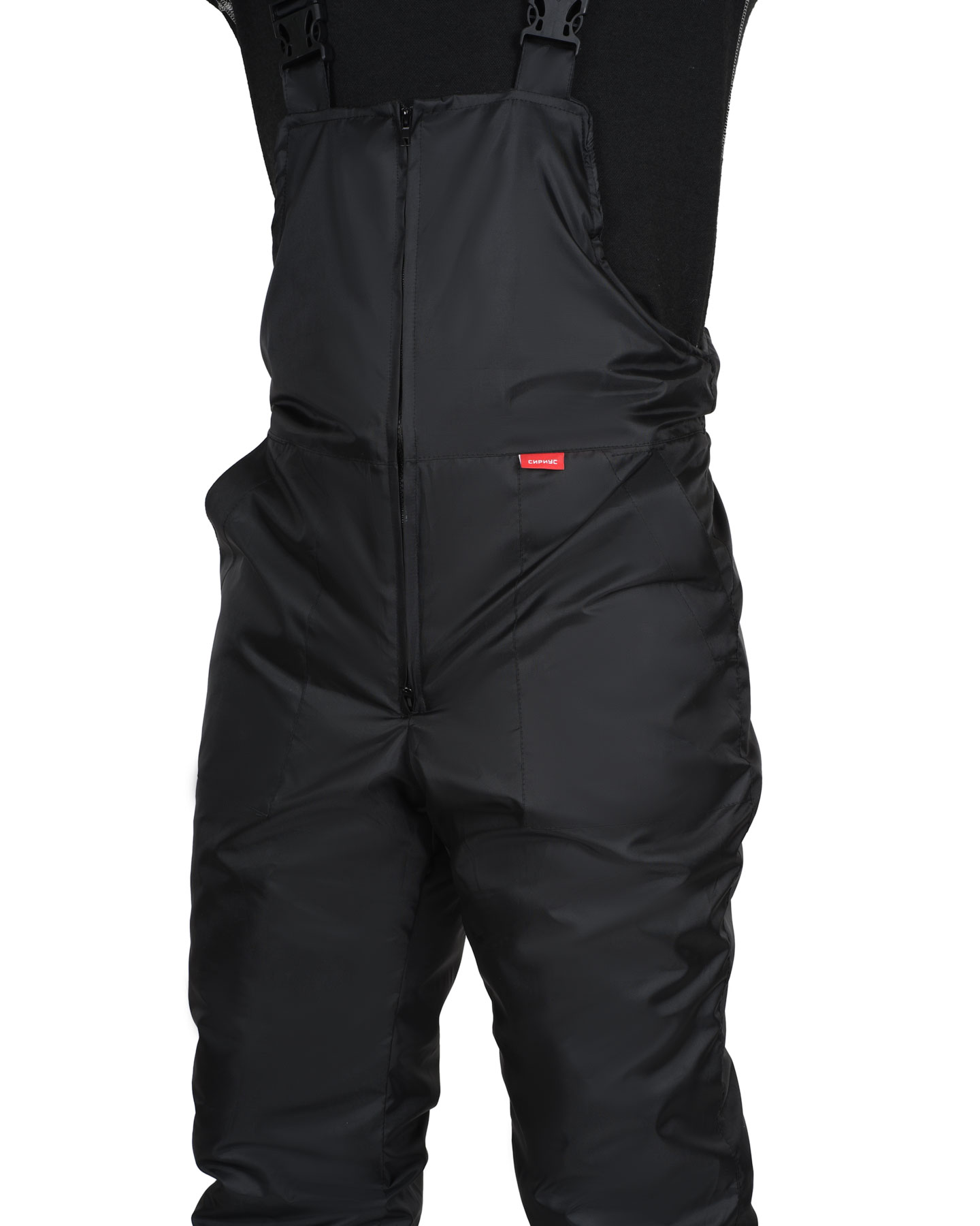 Полукомбинезон с притачной утеплённой подкладкой, с застёжкой на молнию, с боковыми накладными карманами. По спинке частично резинка для лучшего прилегания. Полукомбинезон с бретелями, длина регулируется резинкой и застежкой-фастексом.