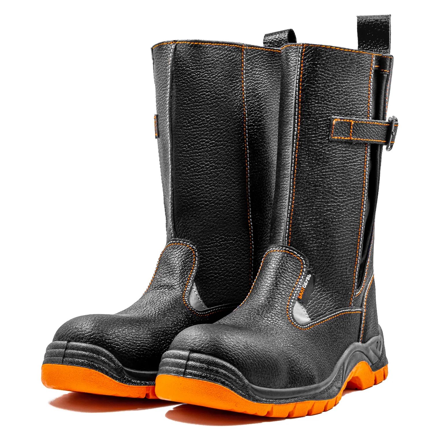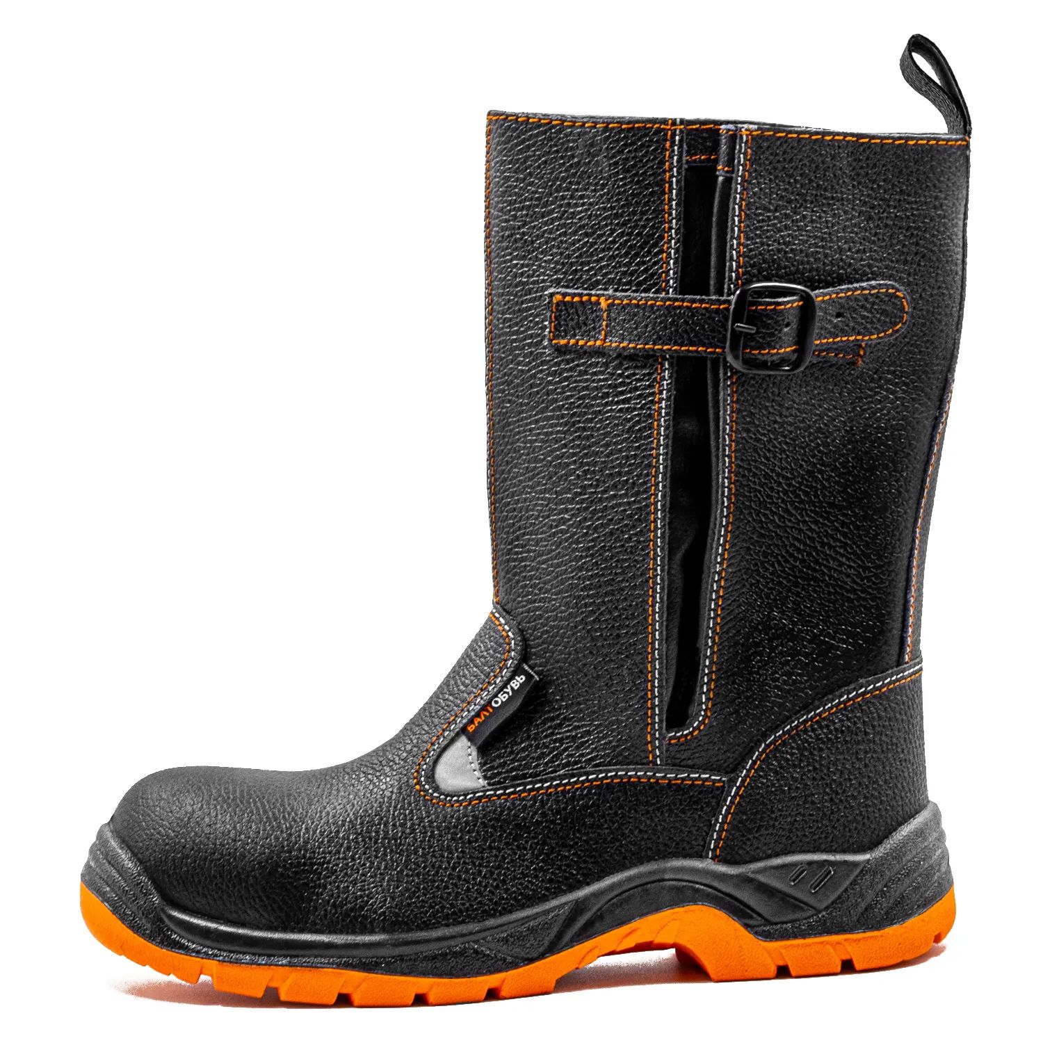 Защитные сапоги на двухслойной ПУ/ТПУ (полиуретановой + термополиуретановой) подошве изготовлены из натуральной юфтевой кожи устойчивой к воздействию агрессивных внешних факторов. Носок защищен композитным подноском с ударной нагрузкой до 200 Дж. Подошва двухслойная ПУ/ТПУ изготовлена литьевым методом, устойчива к воздействию кислотно-щелочных веществ (до 20%), масло-бензольных соединений и нефтепродуктов. Рабочая температура эксплуатации ботинок от -35°С до +130°С. Амортизатор в пяточной части сапога обеспечивает дополнительный комфорт для ног. Анатомическая стелька из ЭВА обеспечивает комфорт носки и снижает нагрузку на суставы ног
